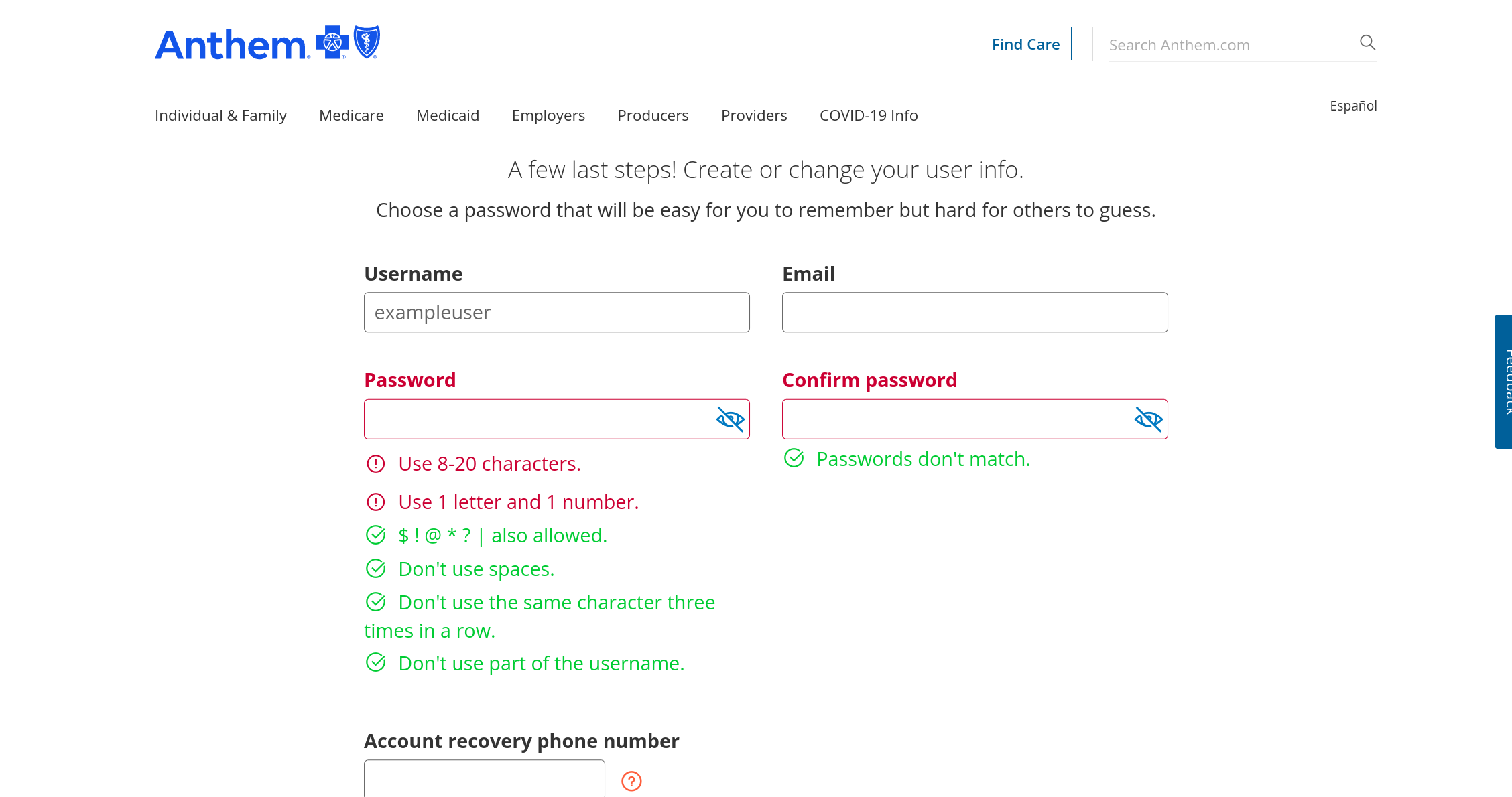 Anthem.com dumb password rule screenshot