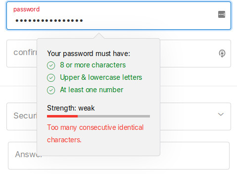 Can't contain 3 or more consecutive identical characters, nor can it be more than 63 characters long.