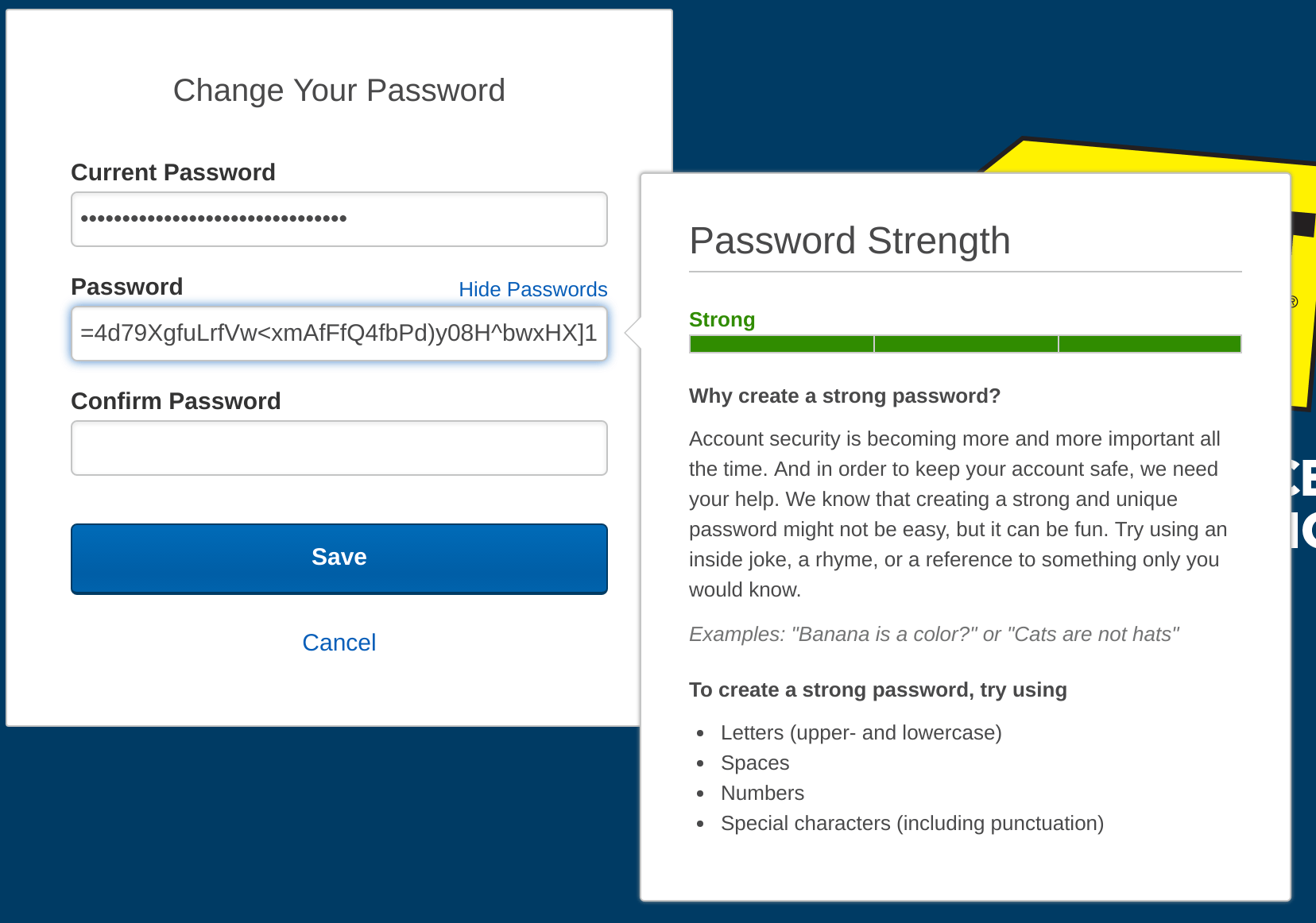 You can enter whatever password you like! But you probably don't want to make it too long, because you'll break us and you'll never be able to login again.