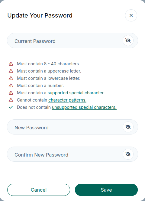 Must be between 8 and 40 characters, uppercase and lowercase, one number, one special character... whatever. But special characters are limited to -#$%+?~*!. (and space). WHY?!