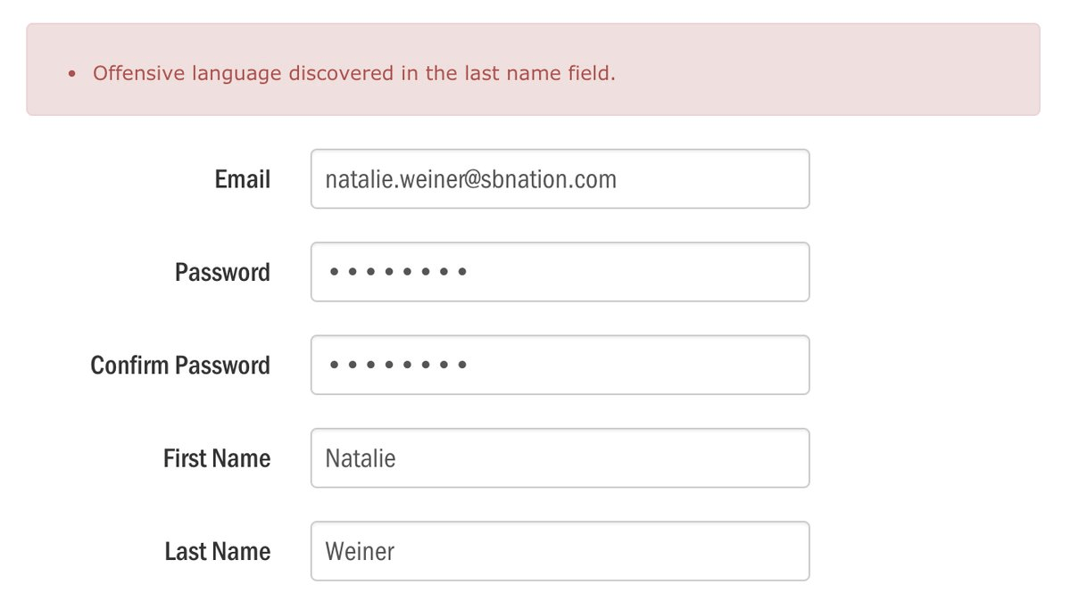 Natalie Weiner can't sign in because her's lastname is offensive language for the website