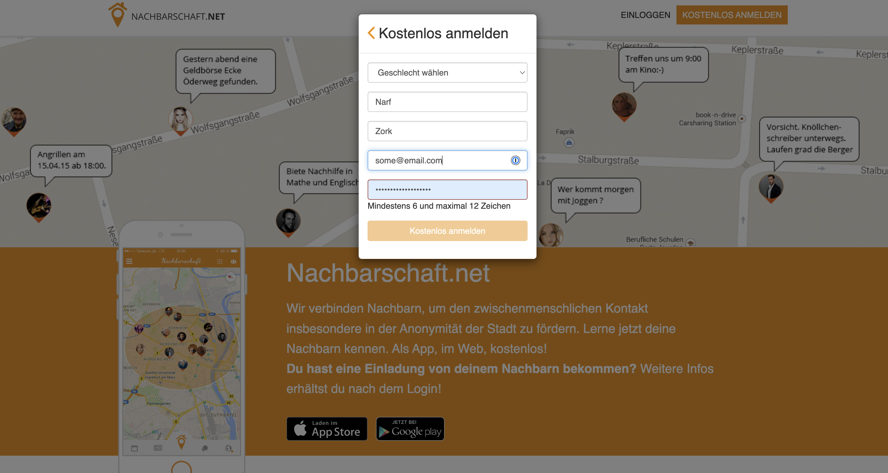 "Mindestens 6 und maximal 12 Zeichen" - or in English: "At least 6 and max. 12 characters.