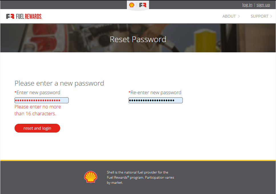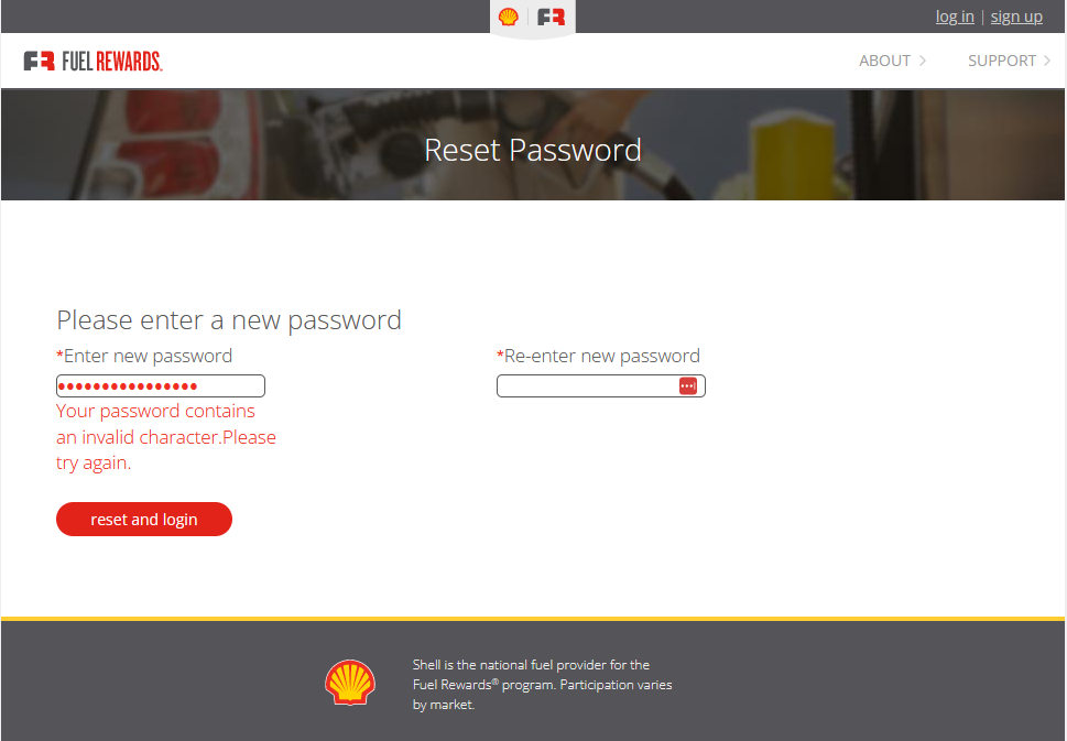 Shell Fuel Rewards dumb password rule screenshot