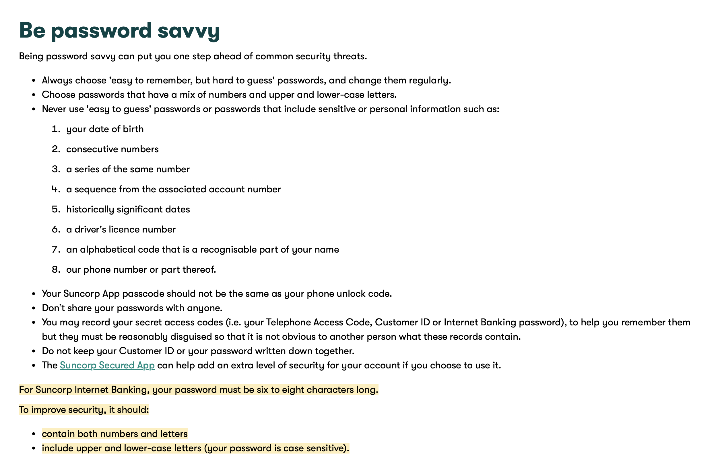 Suncorp dumb password rule screenshot