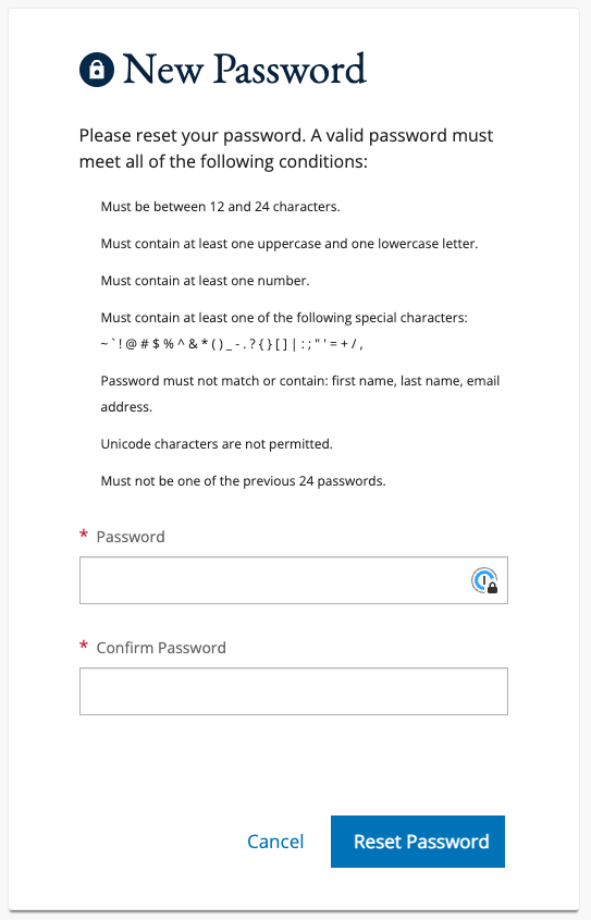 - Must contain at least one of the following special characters: ~ ` ! @ # $ % ^ & * ( ) _ - . ? { } [ ] | : ; " ' = + / ,