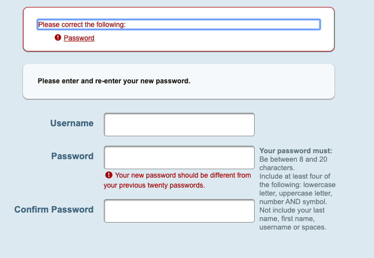 - Include at least 4 of the following: lowercase letter, uppercase letter, number AND symbol